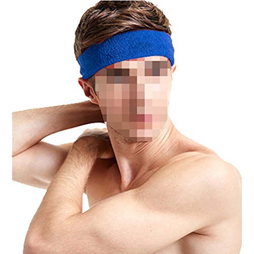 SpringPear - أربطة رأس زرقاء للجنسين من سبرينج بير، 1× طوق للرأس من قطن تيري ممتص للعرق، مثالي للارتداء أثناء ممارسة الرياضة وتمرينات اليوجا واللياقة البدنية