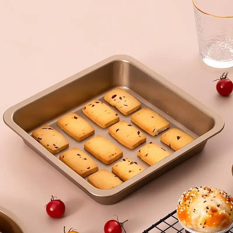 Generic - صينية خبز مربعة، مقاس ٢٢ سم، مقاومة للحرارة، لون ذهبي