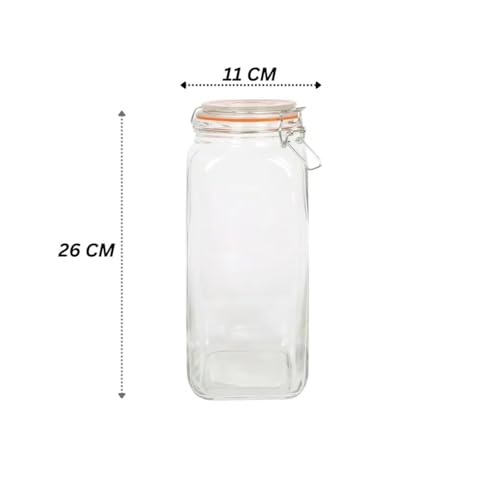 • سعة كبيرة 2 لتر: يأتي البرطمان بسعة 2 لتر (2000 مل)، مما يجعله مثاليًا لتخزين كميات كبيرة من المواد الجافة مثل المعكرونة، أو الحبوب، أو البسكويت.