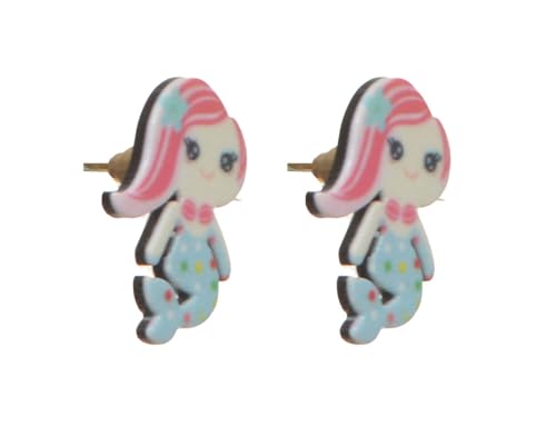 Generic - سلسلة وحلقان بتصميم حورية البحر من الفولاذ المقاوم للصدأ للبنات، طقم من قطعتين، ذهبي، DR-A-24