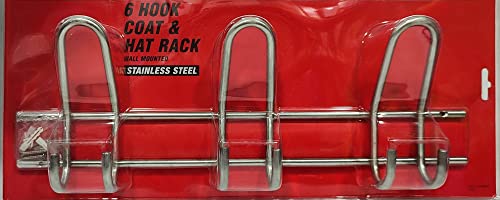 Generic - رف تعليق قبعات ومعاطف 6 خطافات من الستانلس ستيل، فضي
