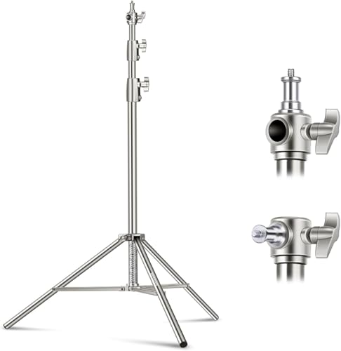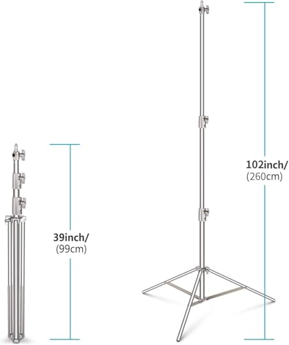 - 【هيكل صلب】 مصنوع من الستانلس ستيل القوي بنسبة 100%، حامل الضوء متين بشكل مثير للإعجاب ومقاوم للتآكل والرطوبة لمهام التصوير في الهواء الطلق