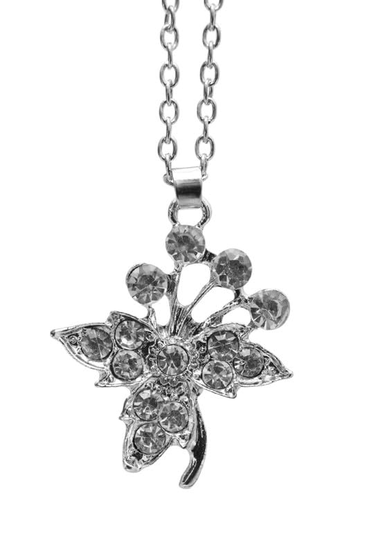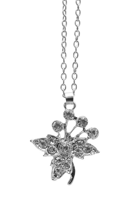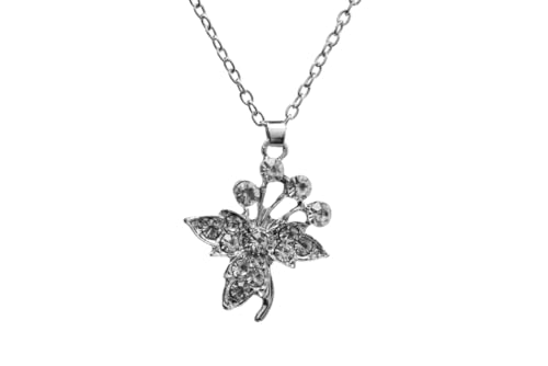 Generic - عقد ستانلس ستيل للنساء بدلاية على شكل فراشة مع فصوص - فضي
