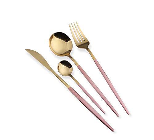 Generic - طقم ملاعق وشوك وسكاكين ستانلس ستيل 24 قطعة - ذهبي بينك