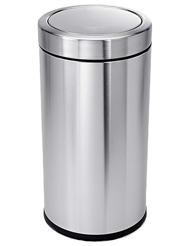Generic - سلة مهملات من الفولاذ المقاوم للصدأ بغطاء علوي متأرجح سعة 30 لتر فضي غطاء
