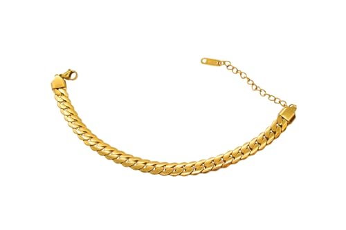 Generic - سوار من الستانلس ستيل بتصميم سلسلة مترابطة بإحكام مع مشبك لوبستر، مقاس واحد - ذهبي