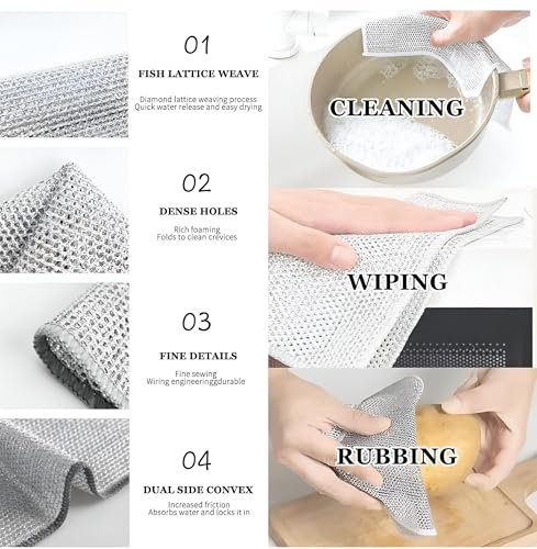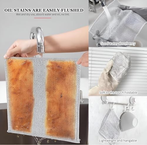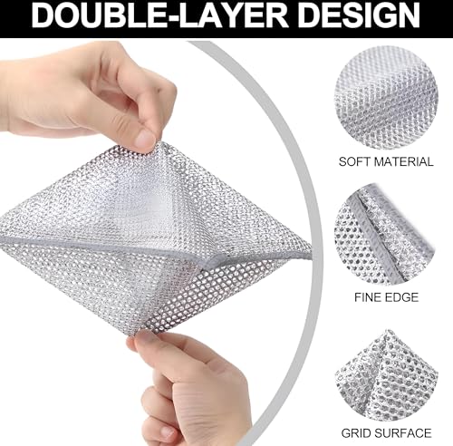 - يضمن المظهر المقاوم للصدأ لقطعة قماش غسل الأطباق هذه بقائها متينة بمرور الوقت حتى عند تعرضها للرطوبة بانتظام. توفر طبيعتها المقاومة للصدأ ميزة على قطع قماش غسل الأطباق التقليدية المعرضة للتآكل والتلف.