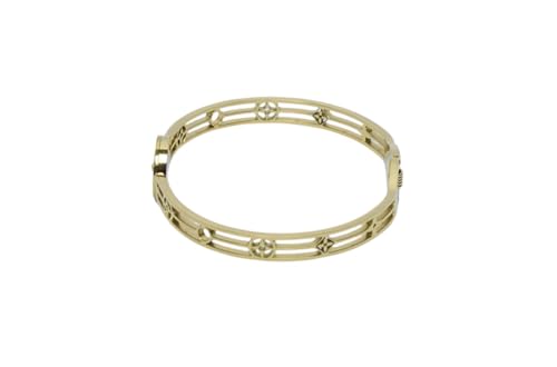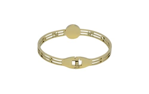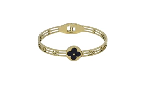 Generic - سوار عريض من الستانلس ستيل بتصميم زهرة البرسيم للبنات - ذهبي واسود