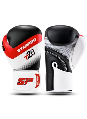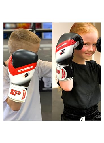 Starpro - قفازات ملاكمة T20 للمبتدئين لتدريب الشباب في الملاكمة والكيك بوكسينج واللياقة البدنية وتمارين الملاكمة للأطفال تتوفر بمقاسات 113 و170 جم وبالألوان أزرق وزهري وأبيض من ستاربرو (أسود، 170 جم)