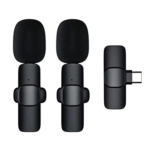 Stela - ميكروفون ستيلا K9 لاسلكي مزدوج بمنفذ نوع سي يعلق بالياقة بخاصية التسجيل فور التوصيل شحن الموبايل أحادى أسود