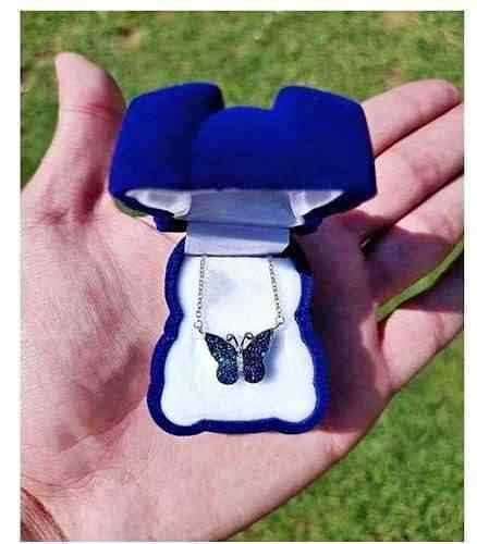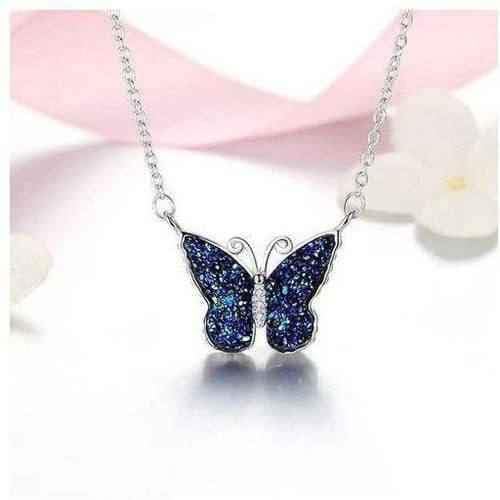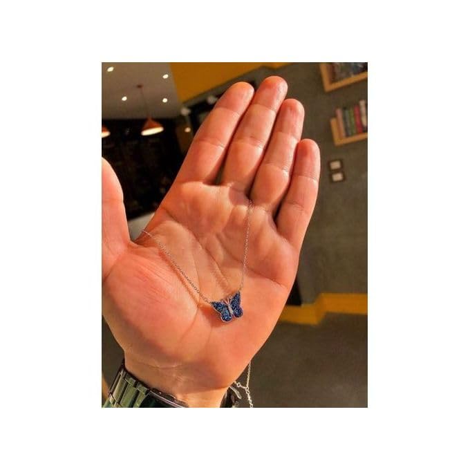 Generic - سلسلة من الفضة الاسترلينية عيار 925 على شكل فراشة زرقا - فضة ايطالية 925 فضة استرلينية 925 على شكل فراشة زرقاء - فضة ايطالية 925 + صندوق هدايا