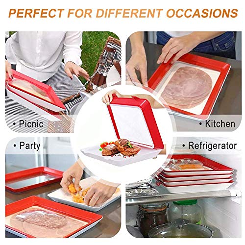 WAROOM - صينية بلاستيك لحفظ الطعام - صواني طعام قابلة للرص فوق بعضها لاعادة الاستخدام لتخزين الطازج مثل الفواكه والخضروات واللحوم والمطبخ والمكتب والمدرسة 6 من واروم مستطيلي أحمر