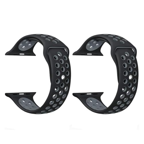 Generic - سوار سيليكون لساعة ابل من قطعتان مقاس 42/44، لون اسود اوبن وورك رمادي