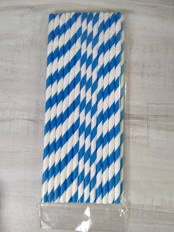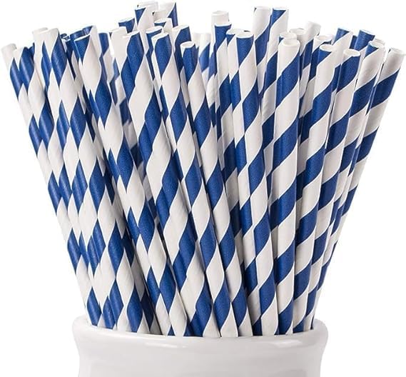Generic - شفاطات ورق مخططة قابلة للتحلل، لون أزرق وأبيض، 26 قطعة