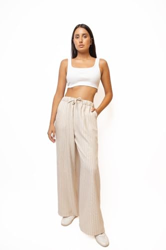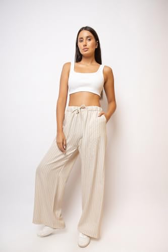 Believe - بنطلون عريض مخطط مع حبل - كيوي