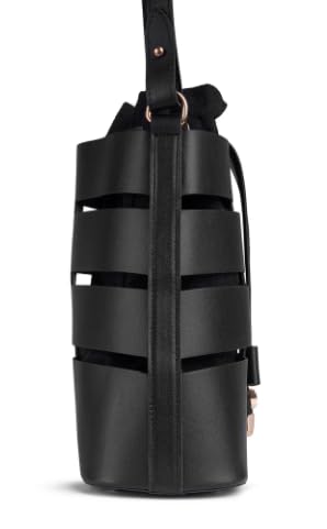 Generic - شنطة باكيت سوداء انيقة بتصميم مفرغ، قطع معدنية بلون ذهبي وردي، اغلاق برباط