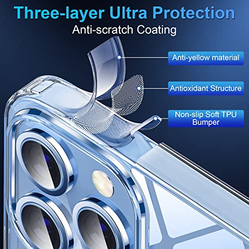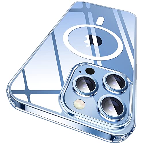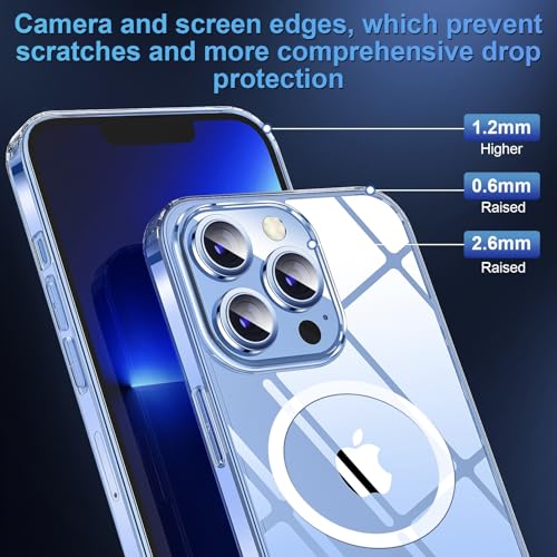 SUCGLES - جراب موبايل مغناطيسي بتقنية مضادة للاصفرار مطورة الترا هايبرد 2022 مع حماية من السقوط والصدمات الدرجة العسكرية متوافق شاحن ماج سيف مصمم لايفون 13 برو ماكس شفاف ساجليس، البولي يوريثين الحراري