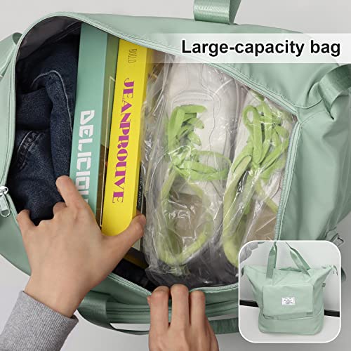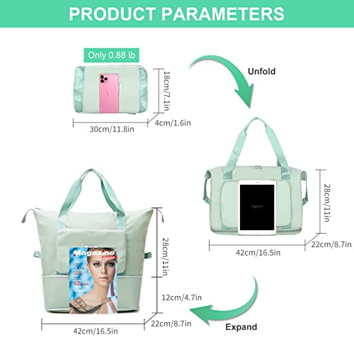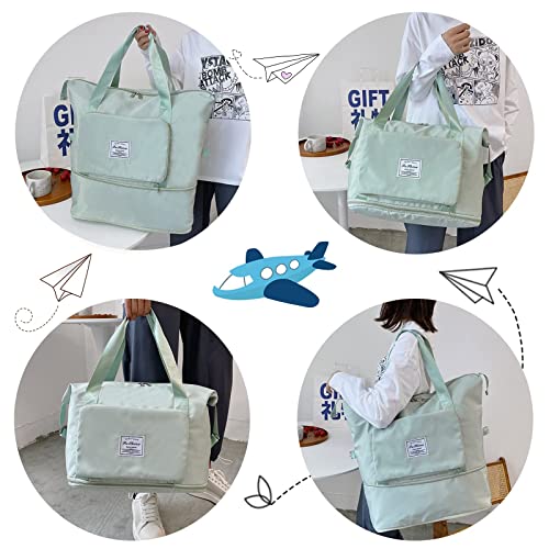 Generic - شنطة يد كبيرة توت للسفر قابلة للطي من قماش اوكسفورد مقاومة للماء وخفيفة الوزن وقابلة للتوسيع من سودياو، أخضر مينت