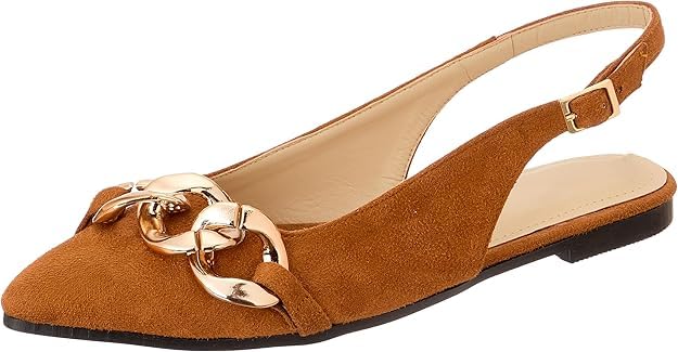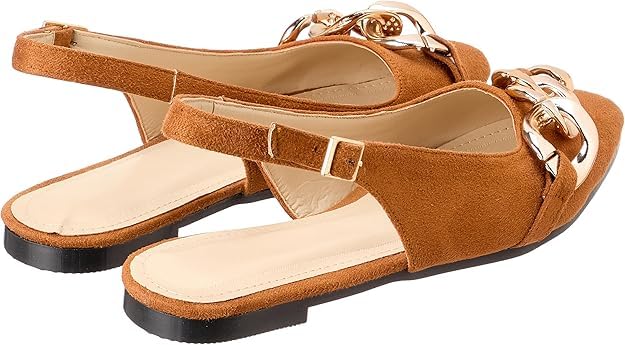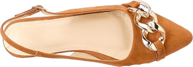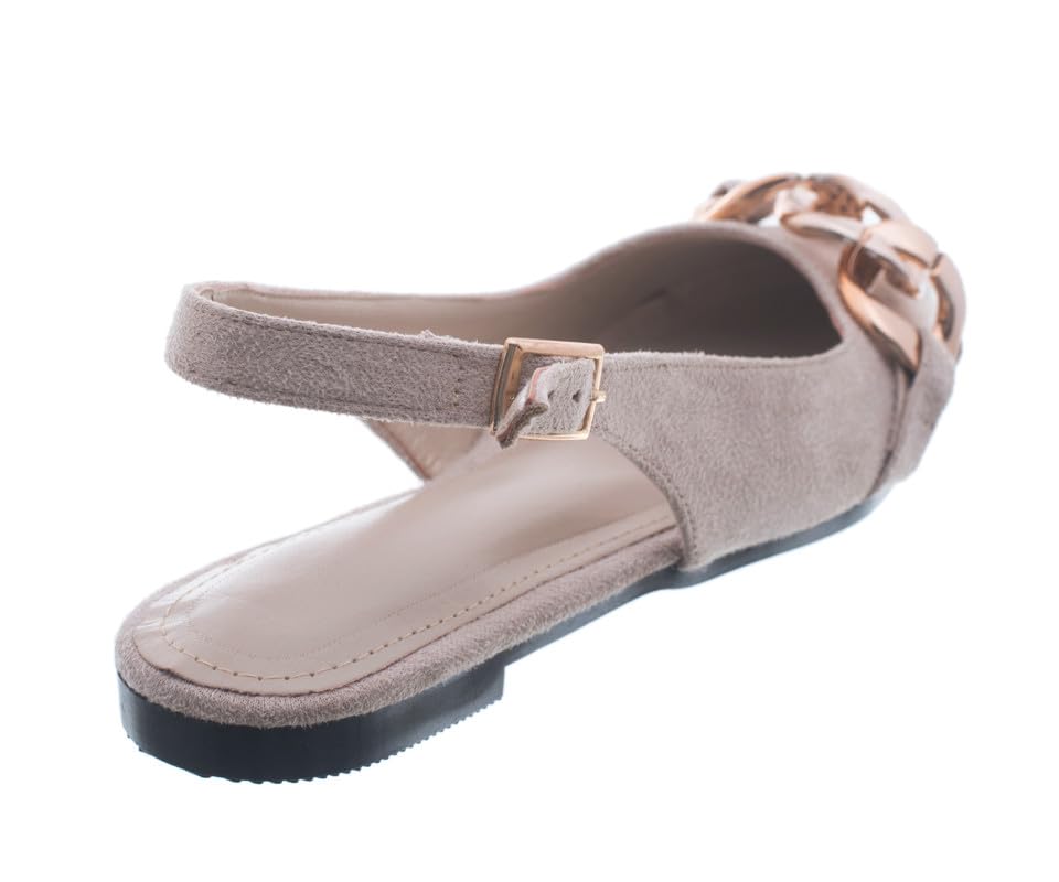 SWAY - حذاء شمواه مسطح مدبب بحزام خلفي مع سلسلة كبيرة بتصميم عصري مقاس EU 37