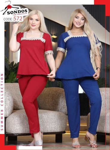 SONDOS FOR HOMEWEAR - بيجامة نسائية قطن 100% من مصنع سندوس – تيشيرت بأزرار + بنطلون مريح – متوفرة بعدة ألوان – مقاس حر من 60 إلى 90 كجم
