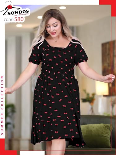 SONDOS FOR HOMEWEAR - فستان كاش استك نسائي من سندس – خامة قطن شعيرات ليكرا – مقاس واحد يناسب من 60 إلى 90 كجم – طبعة كرز أنيقة