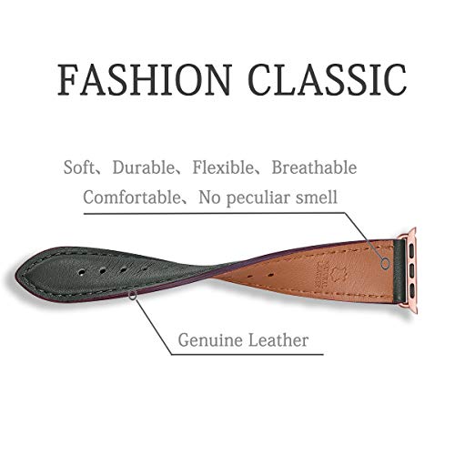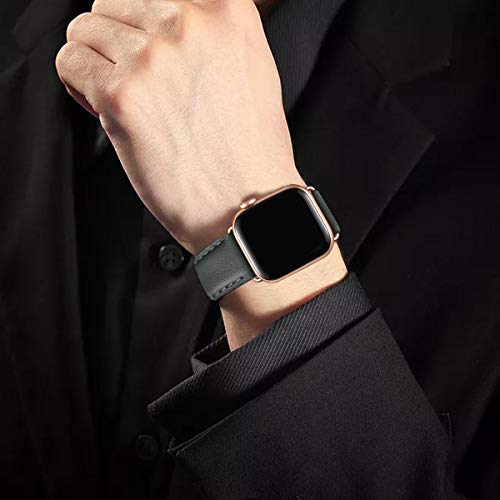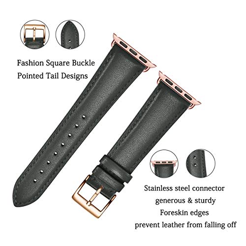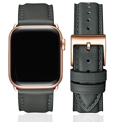 SUNFWR - سوار ساعة مصنوع من جلد طبيعي متوافق مع سوار ساعة ابل بمقاس 42 و44 و45 ملم للرجال والنساء من صنفير، سوار بديل لساعة اي ووتش سلسلة 7 6 5 4 3 2 1/ SE/ سبورت (مقاس 42 و44 و45 ملم، سبيس جراي وروز جولد)