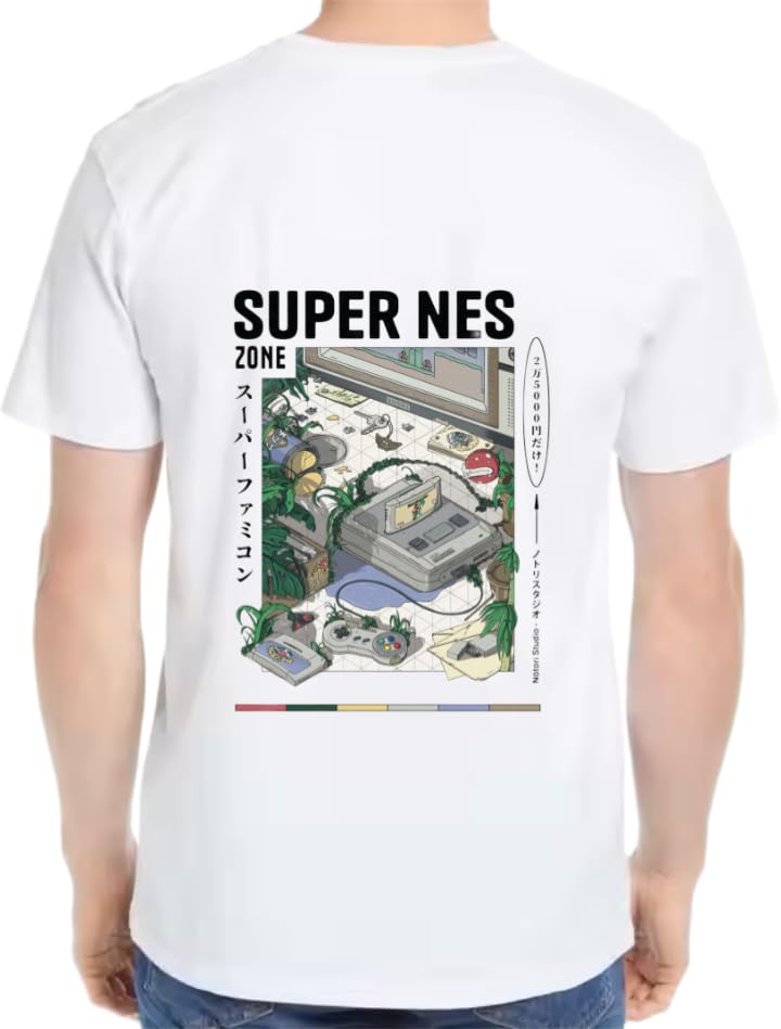 Generic - تيشرت بظهر أبيض مطبوع عليه عبارة «SUPER NES ZONE»