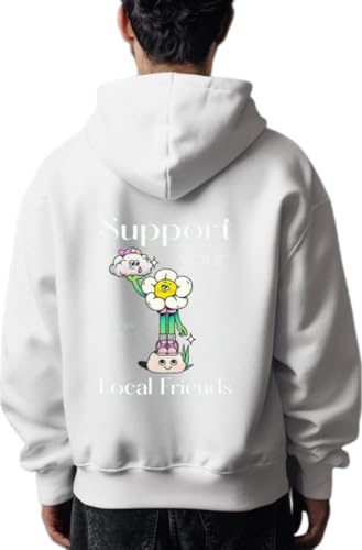 Generic - سترة بقلنسوة مطبوع عليها Support Your Local Friends باللون الأبيض