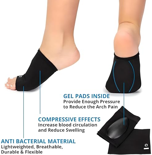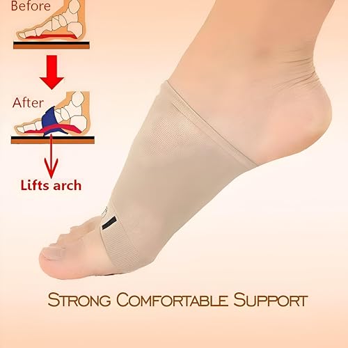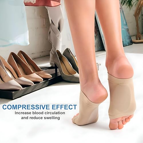 - مصممة كزوج من الشرابات الضاغطة مع وسائد جل مدمجة، أكمام الدعم هذه مصنوعة من قماش ناعم ومرن يتوافق بشكل مريح مع جميع أشكال القدم، مما يوفر ضغط قوس مستهدف دون شد مفرط، مما يضمن ملاءمة محكمة ومرنة للمشي أو الجري أو الأنشطة الرياضية.