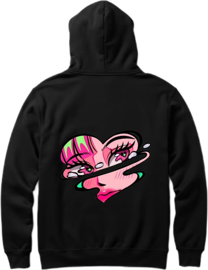 Generic - سترة بقلنسوة بتصميم وجه انيمي سوريال اسود