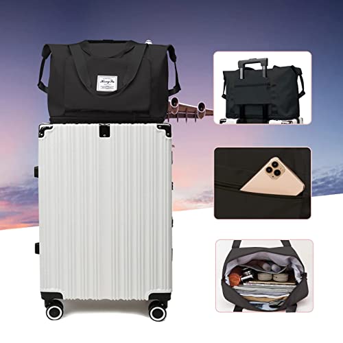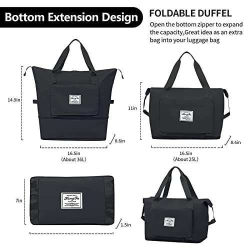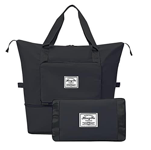 SVTEOKO - شنطة دفل للسفر مقاومة للماء، شنطة لعطلة نهاة الاسبوع للنساء، شنطة صالة الالعاب الرياضية القابلة للطي بجيب مبلل، شنطة يد كبيرة توت ليليلة، شنطة للمستشفي من سفتيوكو, أسود، البوليستر