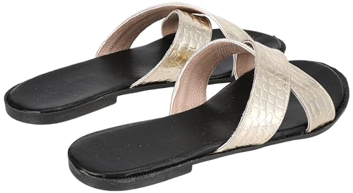SWAY - SWAY Flat comfortable black embedded outsole with a simple metallic upper