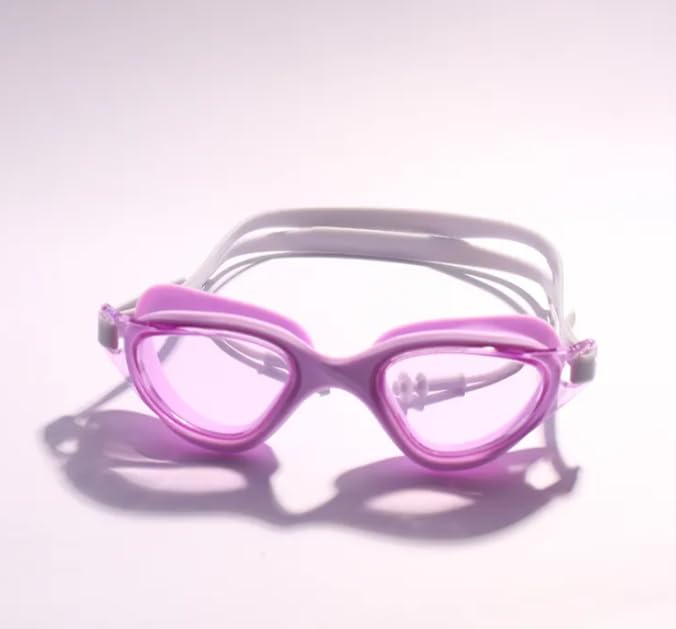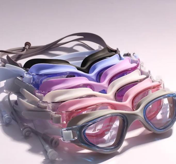Generic - نظارات سباحة مع حماية من الأشعة فوق البنفسجية، مضادة للضباب، تصميم مانع للتسرب، حزام سيليكون ناعم قابل للتعديل مع سدادات أذن