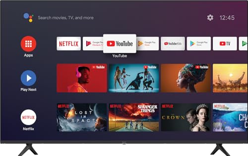 Syinix - تلفزيون سمارت ال اي دي اندرويد بتقنية المدى الديناميكي العالي HDR FHD مع لوحة A+ وريسيفر مدمج من ساينيكس مقاس 55 بوصة ولون أسود موديل 55U51