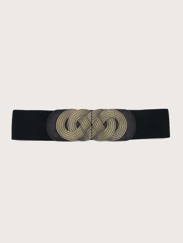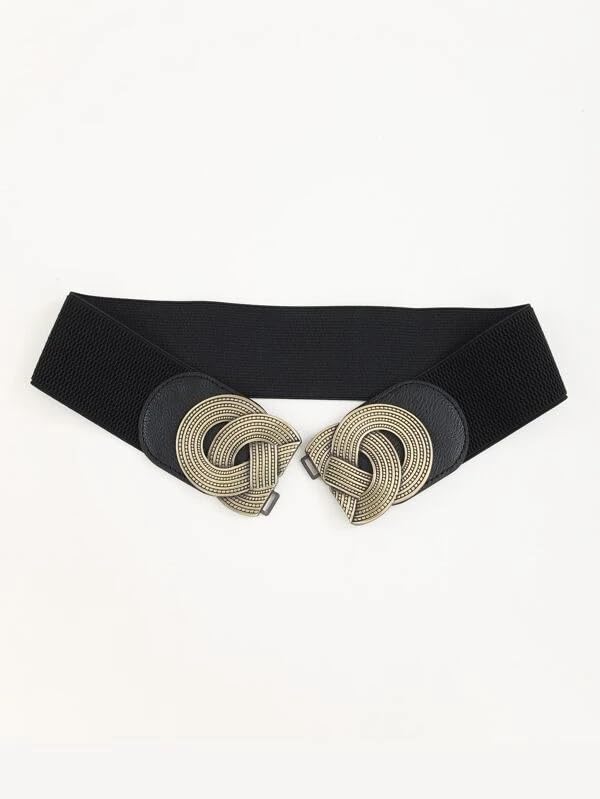 Generic - حزام عريض بابزيم متناسق، اسود، بولي يوريثين، للنساء