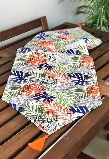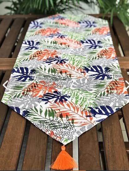 Generic - مفرش طاولة - تصميم تركي - مفرش عصري مزين بشراشيب بنمط اوراق الشجر