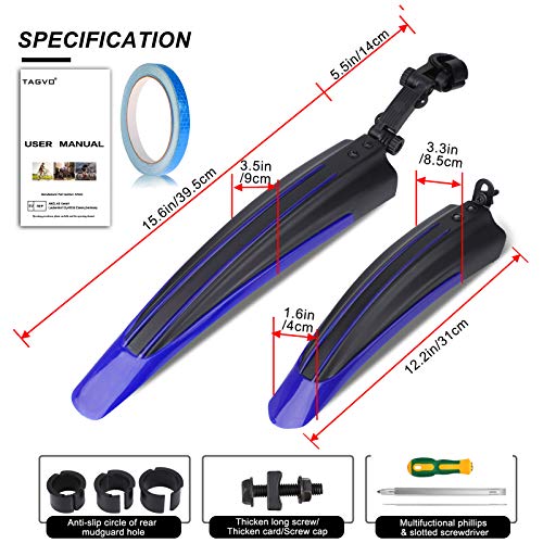 TAGVO - رفرف واقٍ من الطين للدراجة بمقاس 20/22/24/26 بوصة من تاجفو، تغطية كاملة بتصميم قابل للتعديل وسميك وعريض للجزء الأمامي والخلفي، مجموعة واقيات من الطين للدراجات الجبلية ودراجات الطرق