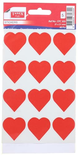 TANEX - ستيكر ملصقات من تانيكس قلوب 5 ورقه احمر موديل STC-305