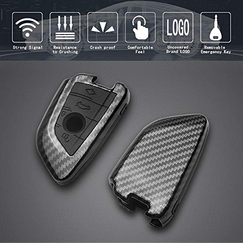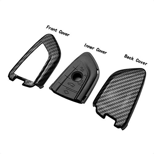 TANGSEN - غطاء مفتاح ذكي من السيليكون لسيارة بي ام دبليو2 و5 و6 و7 سلسلة X1 وX2 وX3 وX5 وX6، للمفتاح بـ3 او 4 ازرار، غطاء مخصص لنظام الدخول عن بعد بدون مفتاح بنمط الياف الكربون، اسود من تانجسين