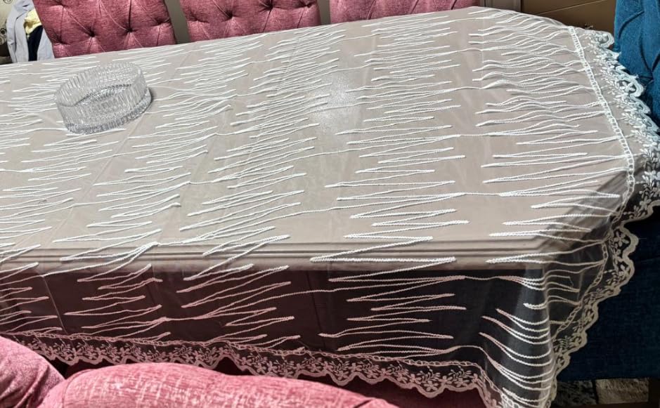 Generic - مفرش سفرة ابيض تانتيل سيفون مقاس 200*150 سم