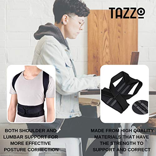 Tazzo Fitness - دعامة تصحيح وضعية الظهر للرجال والنساء - دعم فعال للكتف والعمود الفقري والفقرات القطني لمنع الترهل من L إلى XL - الخصر35 بوصة 48 نيوبرين تازو فيتنس
