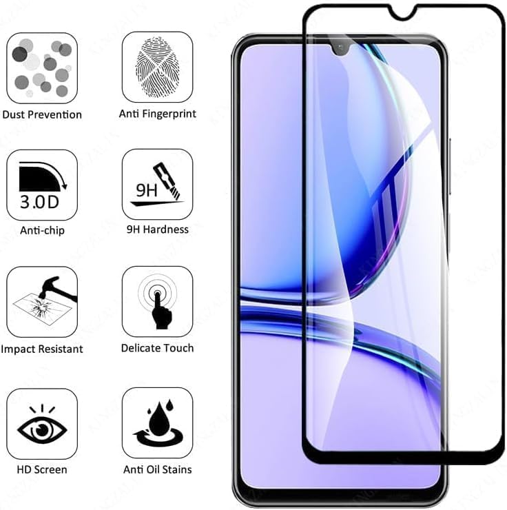 Generic - شاشة حماية من الزجاج المقوى بدرجة صلابة 9 بتغطية كاملة ومقاومة للخدش متوافقة مع ريلمي C53