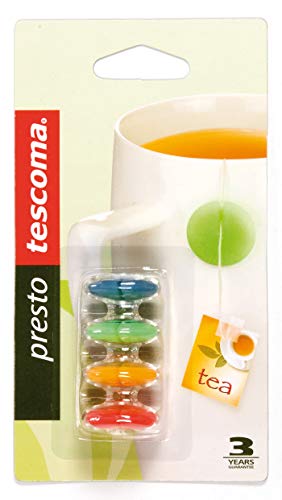 Tescoma - وزن أكياس الشاي مع حامل من تيسكوما، 4 قطع برستو، متنوعة، 15.5 × 8.5 × 2.6 سم، بلاستيك