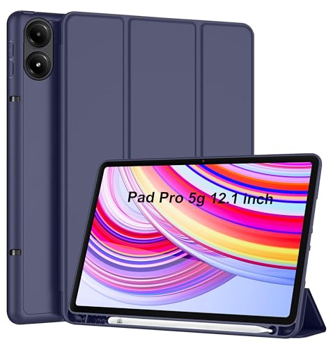 TGK - جراب حماية ثلاثي الطي مع حامل قلم لتابلت ريدمي باد برو 12.1 بوصة من تي جي كيه (لون أزرق)