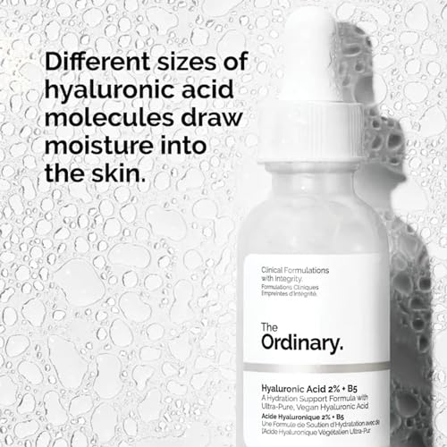 - حمض الهيالورونيك (HA) هو مكون موجود أصلاً في الجلد. إنه عامل ترطيب موجود في البشرة لمساعدة البشرة على امتصاص الماء من الطبقة العميقة. حمض الهيالورونيك لا يجدد الماء نفسه، ولكنه يستخدم الخصائص التي يمكن أن تمتص ما يصل إلى 1000 مرة من وزنه للمساعدة على امتصاص الماء.