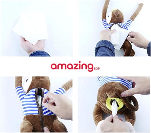 - حامل مناديل مرح: مصنوع من قماش فائق النعومة وقطن البولي بروبيلين عالي الجودة. يمكنك وضع يدك داخل حامل المناديل، ويمكنك تعليقه أيضًا على ظهر الكرسي، كما يمكن استخدامه كمخدة للنوم.