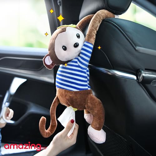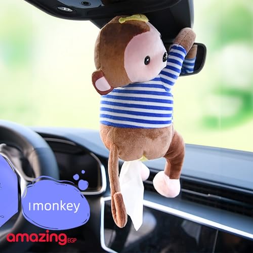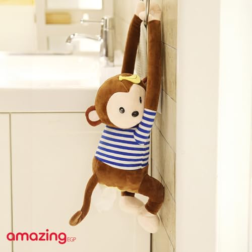 THE PACK - حامل مناديل قابل للتعليق من القطيفة على شكل قرد بطابع كرتوني لطيف لتخزين المناديل الورقية للسيارة والمنزل والحمام بلون بني من ذا باك