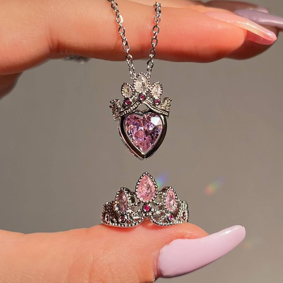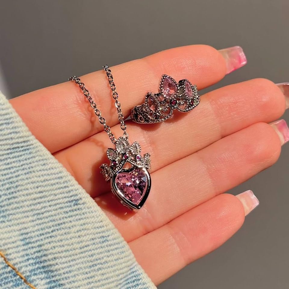 Generic - "مجموعة خواتم وقلادة "قلب الاميرة": تألقي بالفخامة الملكية مع مجموعة الأحجار الكريمة الزهرية المتلألئة، لمسة أنثوية ساحرة تضيف إلى جاذبيتك وأناقتك في كل مناسبة."
