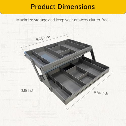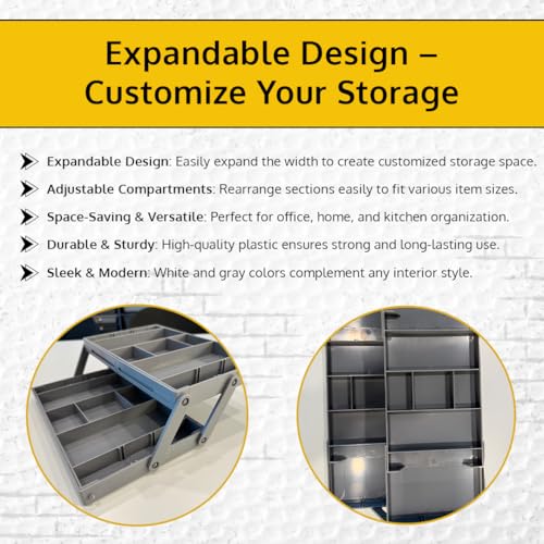 - منظم أدراج ذكي متعدد المستويات: حسّن حلول التخزين لديك مع منظم الأدراج الذكي متعدد المستويات. صُمم ليتمدد وينكمش مما يوفر طريقة مرنة لتنظيم الأغراض المختلفة. مناسب للاستخدام في المنزل والمكتب.