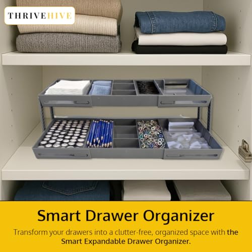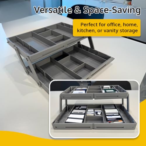 ThriveHive - منظم أدراج ذكي متعدد المستويات من ثرايف هايف مع صواني قابلة للطي من طابقين بتصميم متعدد الأدوار لتخزين فعال، رمادي